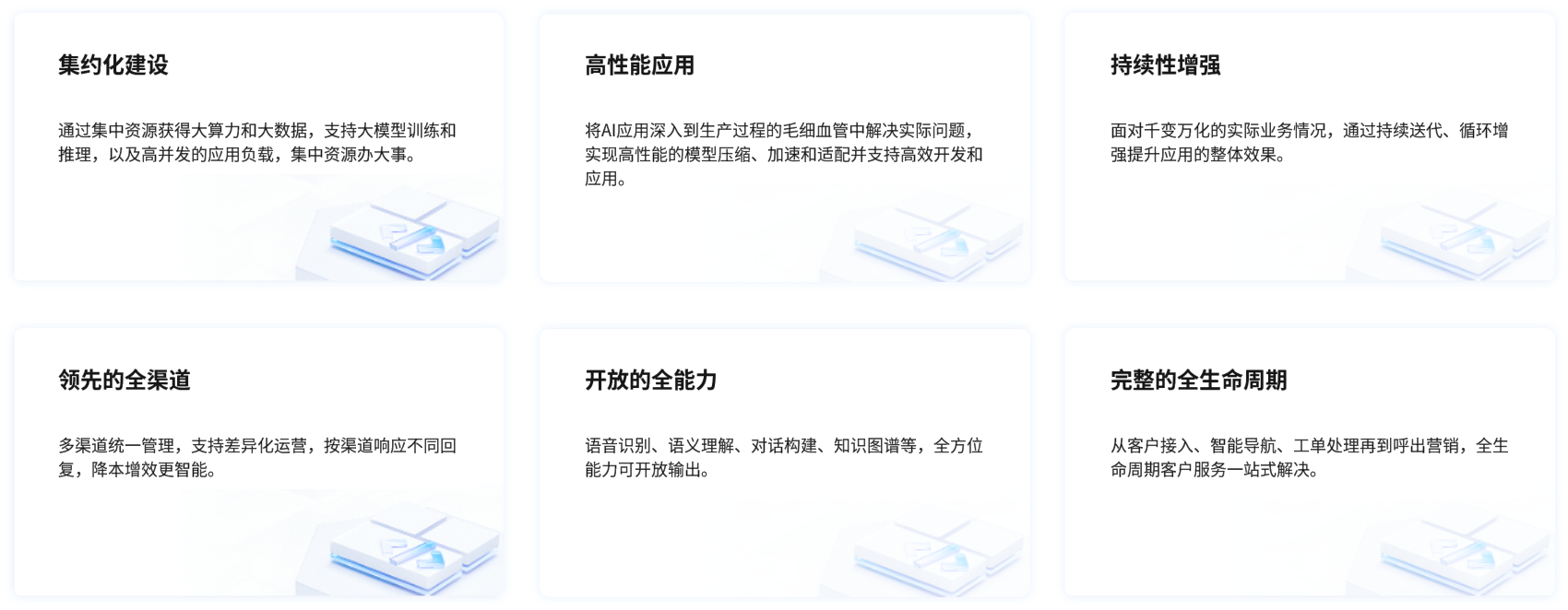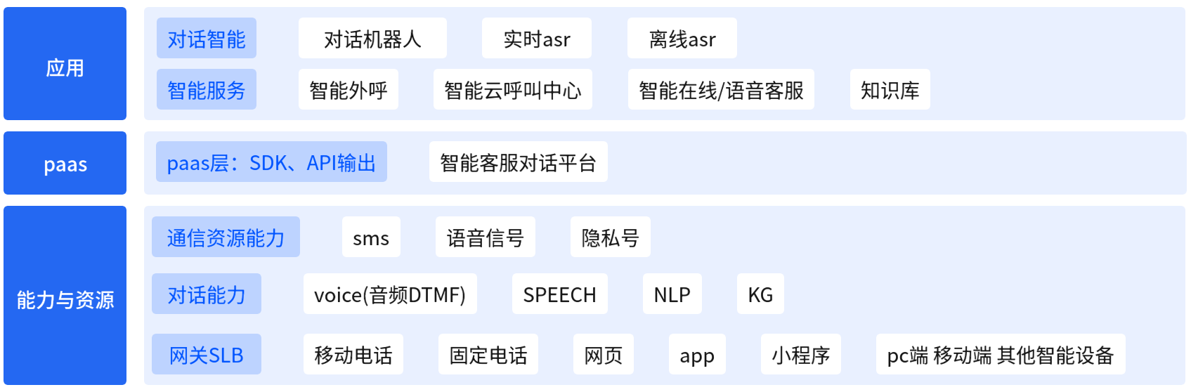 面向语音、PC、移动端等丰富的终端渠道,基于强大的底层AI技术和丰富的通信资源,提供了各种PaaS产品,构建出强大的智能对话平台。打造场景丰富、功能完善的智能客服解决方案;帮助客户降本增效,让客服业务进入AI智能时代。