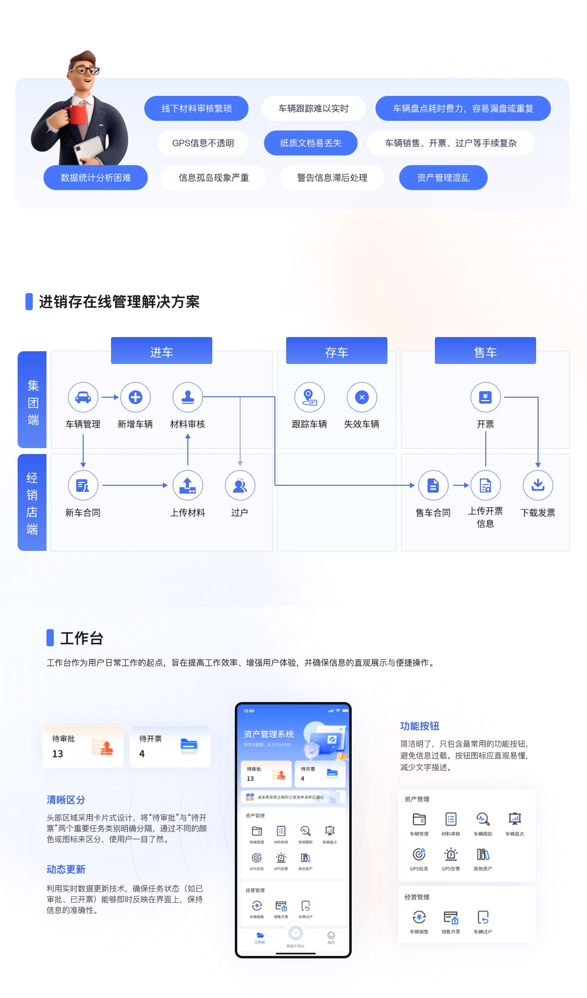 一个具有良好人机交互界面且使用方便简洁的管理系统。平台通过实时监控、数据分析和智能调度,为各部门提供准确、全面的车辆业务信息。打造车辆线上全流程管理闭环,节省成本,提高效率